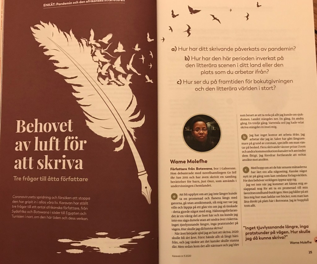 Författare i Afrika om skrivandet under pandemin; frågorna ställdes till bland andra Yvonne Adhiambo Owuor, Kenya, Tiguy Elebe Motingiya, DRC. Karavan #3 2020