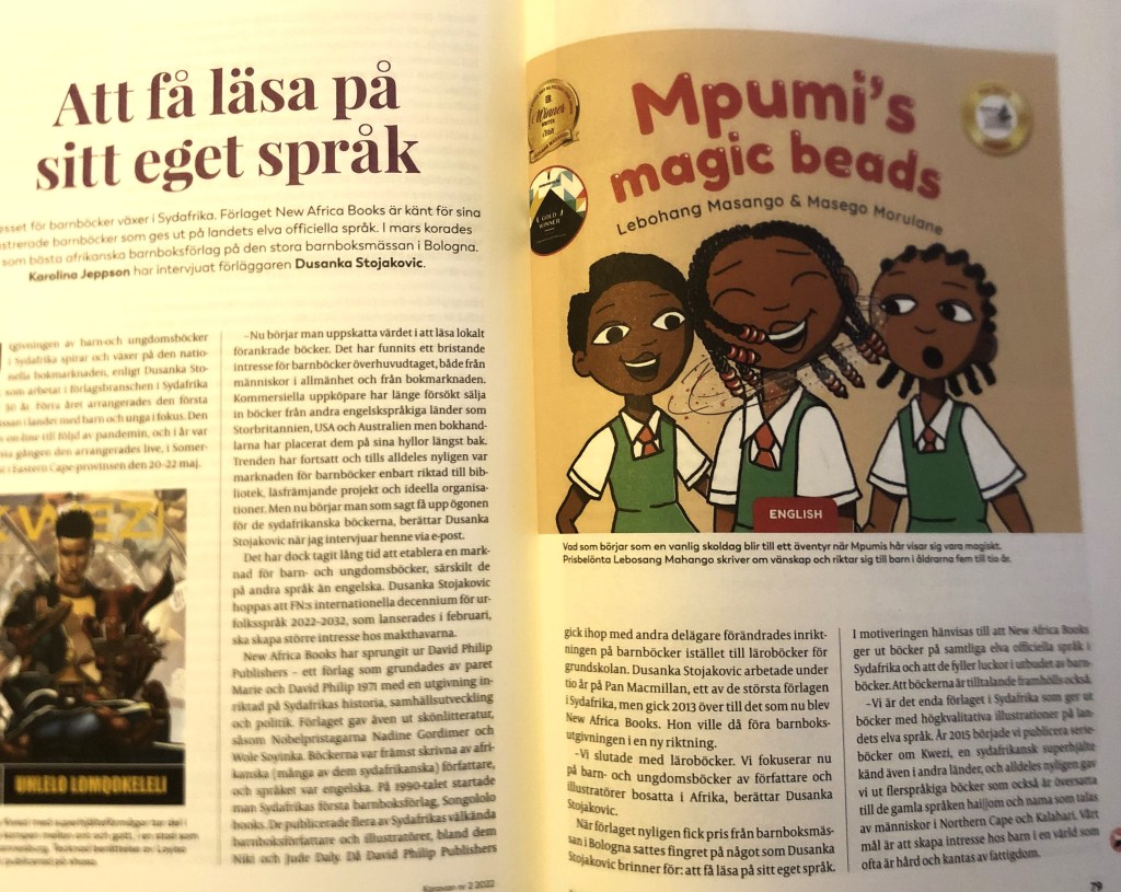 Reportage om ett barnboksförlag i Sydafrika som ger ut böcker på alla landets 11 språk. Karavan #2, 2022