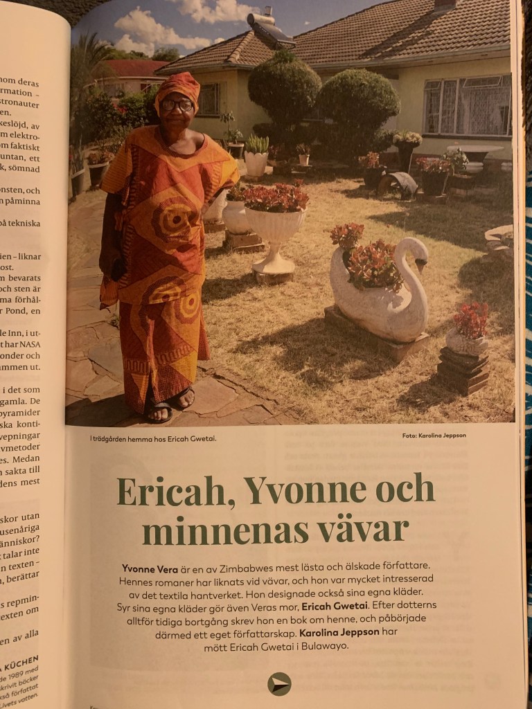 Om mor och dotter. Modern som skrev en biografi om sin dotter Yvonne Vera, en av Zimbabwes mest lästa författare. Det gjorde att hennes eget liv också tog en skrivande riktning. Karavan #2 2024.